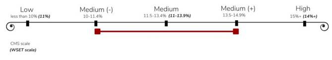 Srednji alkohol. Kada popijete gutljaj, možete osjetiti kako vam alkohol “peče” grlo. Chenin Blanc može imati različite nivoe alkohola, ali je uglavnom uravnotežen.