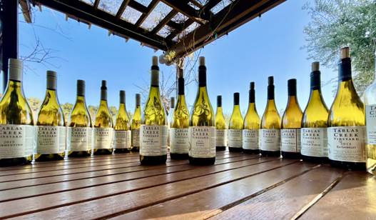 Na imanju Paso Robles dobijamo dosta toplote, pa je poželjno da grožđe sazrijeva dalje od zemlje. Naša kiša je toliko koncentrisana tokom zimskih mjeseci da je manje čokota, robusnije loze bolje imati, nego imati više, ali manje razvijenih čokota. Zato sadimo naše vinove loze udaljenije, sa većim rastojanjem da bismo ograničili konkurenciju i rezali ih na više, dajući više pozicije i više grožđa po čokotu. Ovo stvara jaču lozu koja je manje podložna bolestima, što joj omogućava da duže živi. Otuda i činjenica da su najstariji vinogradi na svijetu tako formirani/oblikovani! Evo pogleda na čokot sorte Grenache u našem najzapadnijem bloku Crosshairs:
