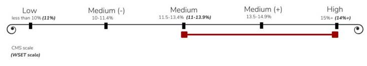Ne postoji univerzalno rješenje kada je u pitanju struktura za svako grožđe, međutim, POSTOJI opšti raspon kada je u pitanju tijelo, kiselina, alkohol i tanin za svako grožđe. U nastavku su navedene opšte smjernice za klasične prezentacije. Uslovi uzgoja sorte i tehnike proizvodnje vina mogu uticati na svaki od sledećih faktora.