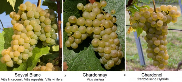 Chardonel. Ukrštanje između sorti Chardonnay i Seyval Blanc. Chardonel je razvijen u Cornell-u 1953. godine, a priznat je i dobio ime 1990. godine. U vinogradu, Chardonel je sličan sorti Chardonnay i zadržava svoju prepoznatljivu kiselost. Dobro raste u područjima država Michigan i Arkansas