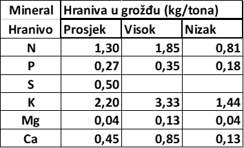 Tabela 1. Mineralni nutrijenti – količine u zrelom grožđu
