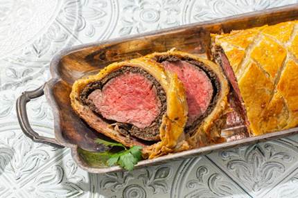 „S obzirom na to da je u pitanju govedina Wellington, definitivno biram Merlot iz doline Napa (po mogućnosti iz 2019.)“, kaže Linette Yao, generalna direktorica restorana Yingtao u njujorškom Hell's Kitchenu. „Ima tu prekrasnu mješavinu crne trešnje, zrele šljive i kompota od kupina koja se savršeno uklapa u bogatstvo govedine“, kaže ona. „Ono što zaista zapečaćuje ovu kombinaciju su slane note – kadulja, lovorov list, majčina dušica, čak i malo sušenog lista duvana – koje podsjećaju na gljive duxelles i začinsko bilje unutar Wellingtona.“