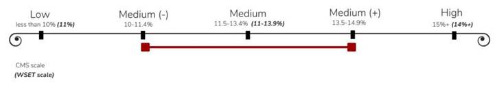 Ne postoji univerzalno rješenje kada je u pitanju struktura za svako grožđe, međutim, POSTOJI opšti raspon kada je u pitanju tijelo, kiselina, alkohol i tanin za svako grožđe. U nastavku su navedene opšte smjernice za klasične prezentacije. Uslovi uzgoja i tehnike proizvodnje vina mogu uticati na svaki od sledećih faktora.