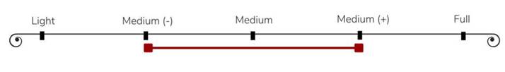 Srednje tijelo. Zamislite tu težinu kao tečnu vagu, od vode (lagano tijelo) do teške pavlake (puno tijelo) u vašim ustima. Torrontés je obično negdje u sredini.