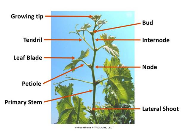 Rast izdanaka i razvoj krošnje usporava se nakon zametanja bobica, a pod umjerenim vodnim stresom prestaje. Ovi događaji se podudaraju sa preusmjeravanjem unutrašnjih resursa čokota dalje od apikalnih zona izdanaka u bobice u razvoju. Sorte, klonovi i podloge utiču na navike rasta izdanaka, što može uticati na atribute krošnje (tabela 1). Važno je napomenuti da atributi krošnje vinove loze utiču na ukupni fotosintetski kapacitet, što zauzvrat utiče na rast čokota vinove loze iznad i ispod zemlje. Prinos, sazrijevanje i kvalitet grožđa kada sazrije. Sazrijevanje izdanka i otpornost na zimu; te broj uskladištenih rezervi hranljivih materija u drvenastim tkivima na kraju vegetacije. Osim toga, atributi krošnje mogu uticati na efikasnost proizvodnje (tabela 2).